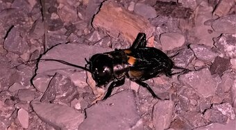 Die Konzertsaison bei den Heuschrecken ist eröffnet! Ab Mai stellen die Feldgrillen den ersten Backgroundchor für sonnige Tage und laue Sommerabende. Das rhythmische und unüberhörbare Zirpen ist die bekannteste Lautäußerung unserer Heuschrecken. Bis in den Juli ist schon vormittags bis in die Abendstunden der „Gesang“ über 50 bis 200 Meter weit zu hören. Das Zirpen variiert in Abhängigkeit von der Temperatur zwischen ein bis sechs Mal Zirpen pro Sekunde und hat drei Varianten: Den lauten Lock-, einen leisen Werbe- und einen aggressiven Rivalengesang. Zirpen entsteht, indem die Schrillkante des Vorderflügels über die Zacken der Schrillader gezogen wird, so wie wenn ein Stift an den Zacken eines Kamms vorbeigezogen wird. Paarungsbereite Männchen zirpen im Eingang ihrer Erdhöhle, um ein Weibchen anzulocken. Dieses nimmt mit Hörorganen in den Vorderbeinen den Gesang wahr und nähert sich ihm zur Begattung.