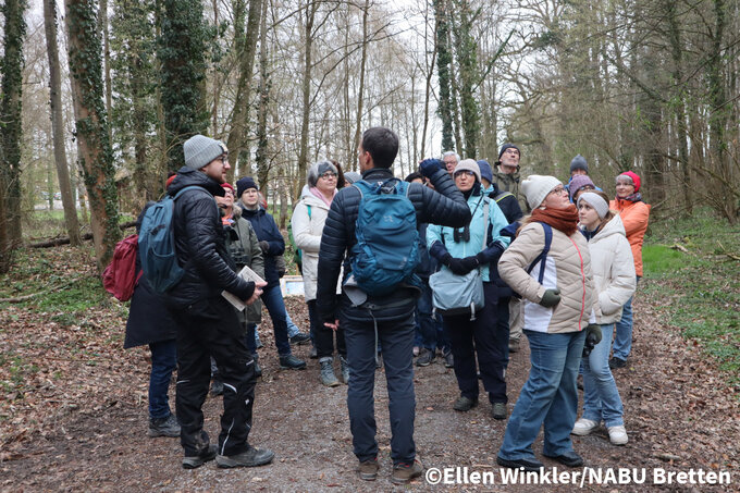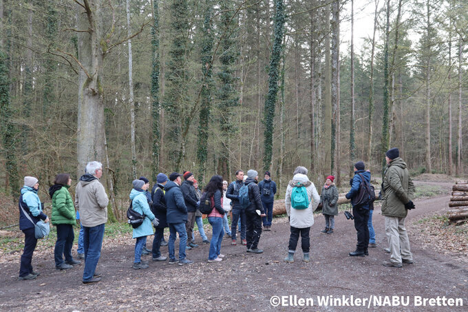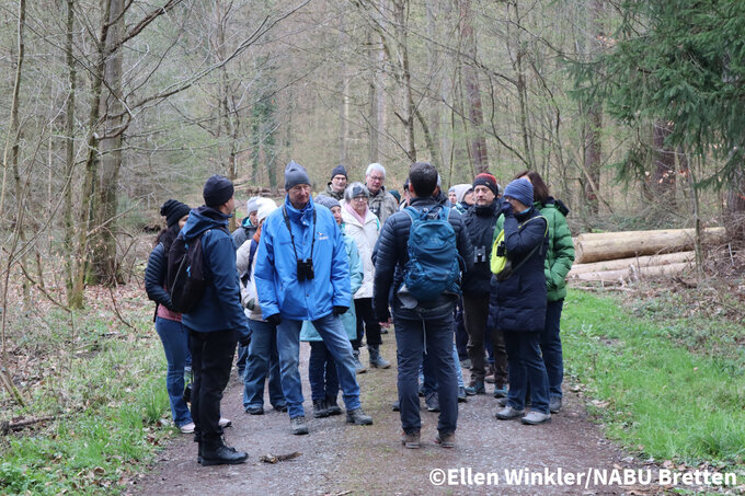 Um 7 Uhr versammelten sich über 20 Teilnehmer bei zwar sehr kaltem, aber trockenem und windstillem Wetter beim Tierpark Bretten. Eberhard Körner und Jannik Stipp nahmen uns mit zu einer abwechslungsreichen Runde in ein reines Waldgebiet mit recht hohem Nadelholzanteil. So ergab sich einerseits ein engeres Artenspektrum, gleichzeitig konnten wir dadurch dieselbe Art immer wieder neu hören und die charakteristischen Gesänge verinnerlichen.